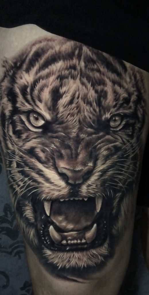 Ich bin bekannt für meine Arbeiten im Bereich Detailreicher Realismus (Realistic Art) und feine, präzise Linienführungen. Zudem verfüge ich über eine ausgewiesene Expertise für innovative Cover-ups. Obwohl der Realismus meine Spezialität ist, setze ich auch andere Stilrichtungen mit höchstem künstlerischem Anspruch um.